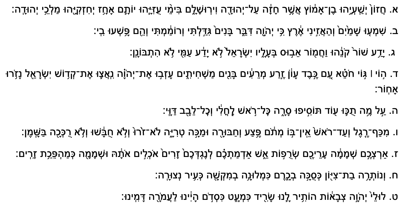 And so, the phrase “which he saw about Judah and Jerusalem in the days of Uzziah, Jotham…” is not to be read as connected directly to the word ḥazon,